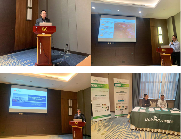 次日,在北京大清生物技術股份有限公司與國藥控股安徽前景醫療器械有限公司積極組織下,榮幸的邀請了中國科學技術大學附屬第一醫院的吳立勝教授,吳教授就幾種疑難食管裂孔疝的手術處理策略進行了細心的講解,參會的老師積極提問討論,會場氣氛熱烈。隨后張亞主任、范學圣主任也分別就單孔TEP治療腹股溝疝的應用體會和六安市醫院疝外科的發展歷程進行分享。最后由大清生物市場總監郭建平對公司的SIS補片產品-瑞拜善進行了宣講。瑞拜善是國內首家生物疝修補材料,通過誘導自體組織生長完成組織修復,采用非交聯技術,在體內180天完全代謝吸收,有效避免了永久異物帶來的慢性疼痛、感染等風險,為腹股溝疝患者帶來滿意療效。會場醫生興趣濃厚,認真聆聽,表示瑞拜善作為生物補片為以后的手術更添加了一把強有力的武器,患者健康也有了更好的保障。瑞拜善產品也是剛剛結束的安徽省集采中標產品,瑞拜善在安徽省各醫院的臨床使用會更有療效和價格比較優勢。