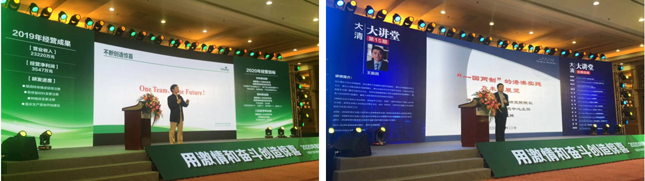 2020年1月13日-14日,大清生物在北京龍城溫德姆召開了2020年度經營管理會,今年的經營主題是“用激情和奮斗創造驚喜”。北京大清生物技術股份有限公司、北京科健生物技術有限公司、北京大清西格科技有限公司全體員工以及重慶大清生物有限公司、天津中津生物發展有限公司全體員工參加會議,對2019年度的工作進行總結匯報以及對2020年度的工作進行部署規劃。