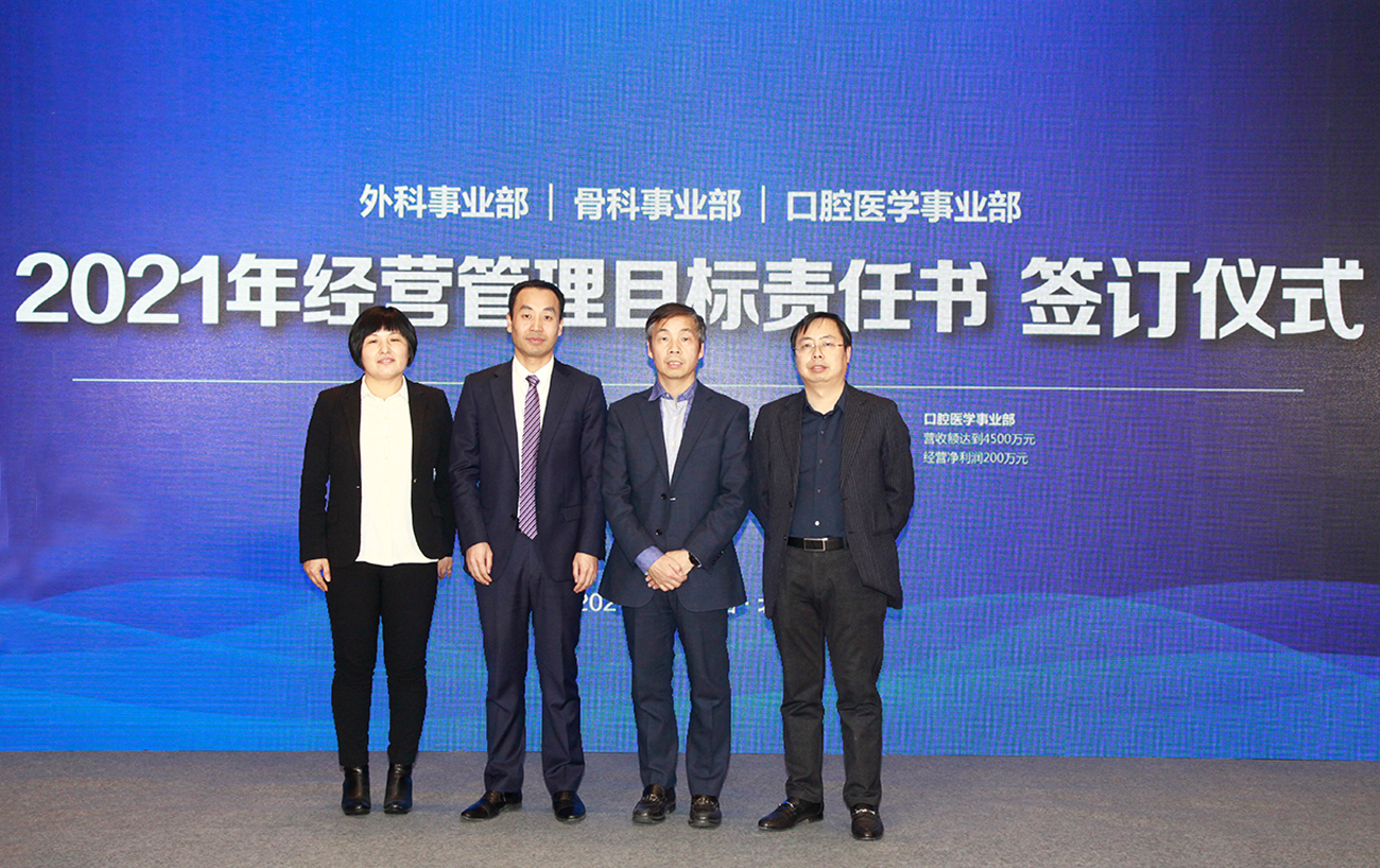 最后董事長分別與外科事業部、骨科事業部簽訂了2021年的目標責任狀,期待2021年各事業部取得佳績。