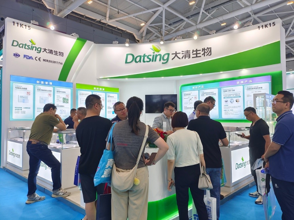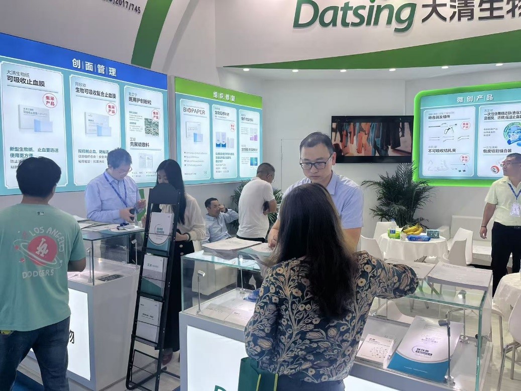 北京大清生物和各參展廠家都收獲大量CMEF進(jìn)館參觀者。新老客戶和國(guó)外尋找產(chǎn)品的外商都利用這個(gè)展會(huì)的機(jī)會(huì)來(lái)北京大清生物公司展臺(tái)進(jìn)行商務(wù)洽商。此次會(huì)議北京大清生物共展出包括創(chuàng)面管理(大清生物紙、生物可吸收復(fù)合止血膜、醫(yī)用護(hù)創(chuàng)粉粒)、組織修復(fù)(生物疝修補(bǔ)片、組織修復(fù)材料、生物硬腦(脊)膜修補(bǔ)片)、微創(chuàng)產(chǎn)品(一次性使用遠(yuǎn)橈動(dòng)脈壓迫止血器、穿刺器、結(jié)扎夾、吻合器)以及最新上市的重磅醫(yī)美新品(醫(yī)用液體敷料、殼聚糖/羧甲基殼聚糖醫(yī)用凍干絮)四大類十余款產(chǎn)品,公司還可以提供高品質(zhì)殼聚糖原料的定制生產(chǎn)和服務(wù),眾多參展觀眾駐足交流和索要公司產(chǎn)品資料。開展商業(yè)洽談,現(xiàn)場(chǎng)火爆空前。大清生物參展第90屆中國(guó)國(guó)際醫(yī)療器械博覽會(huì)期間接待的新老朋友目前正就展會(huì)洽商的合作事項(xiàng)密切聯(lián)系,同時(shí)也期待明年CMEF(春季)展會(huì)與大家再相會(huì)。